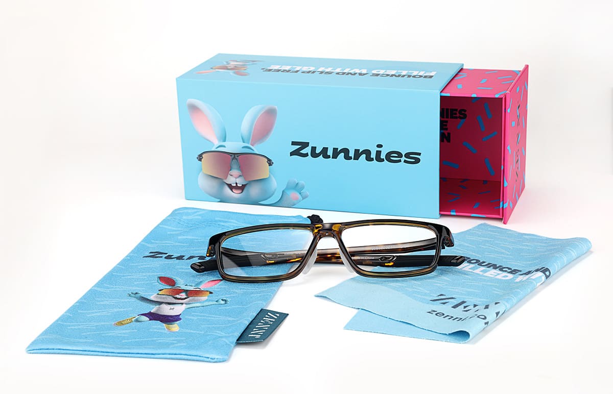 - Design: Elevate your look with this mixed material frame, featuring a bold geometric shape and distinctive layered rims. The Zunnies sports frame boasts sculpted temples, slip-free nose pads, and temple tips for ultimate comfort and performance.